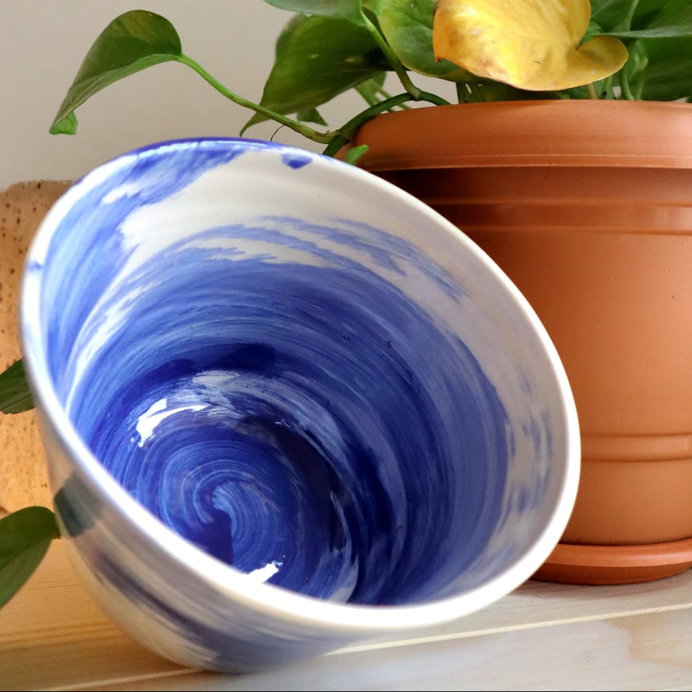 This ceramic piece was handcrafted on a pottery wheel.